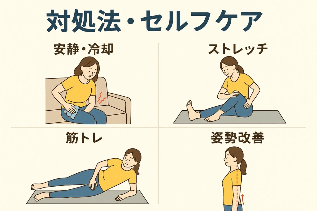 ただし、自己判断で無理に動かしたり、温めたり冷やしたりを繰り返すと、かえって悪化することもあると言われています。ここでは、痛みの程度に応じた応急対応と日常ケアのポイントを整理して紹介します。