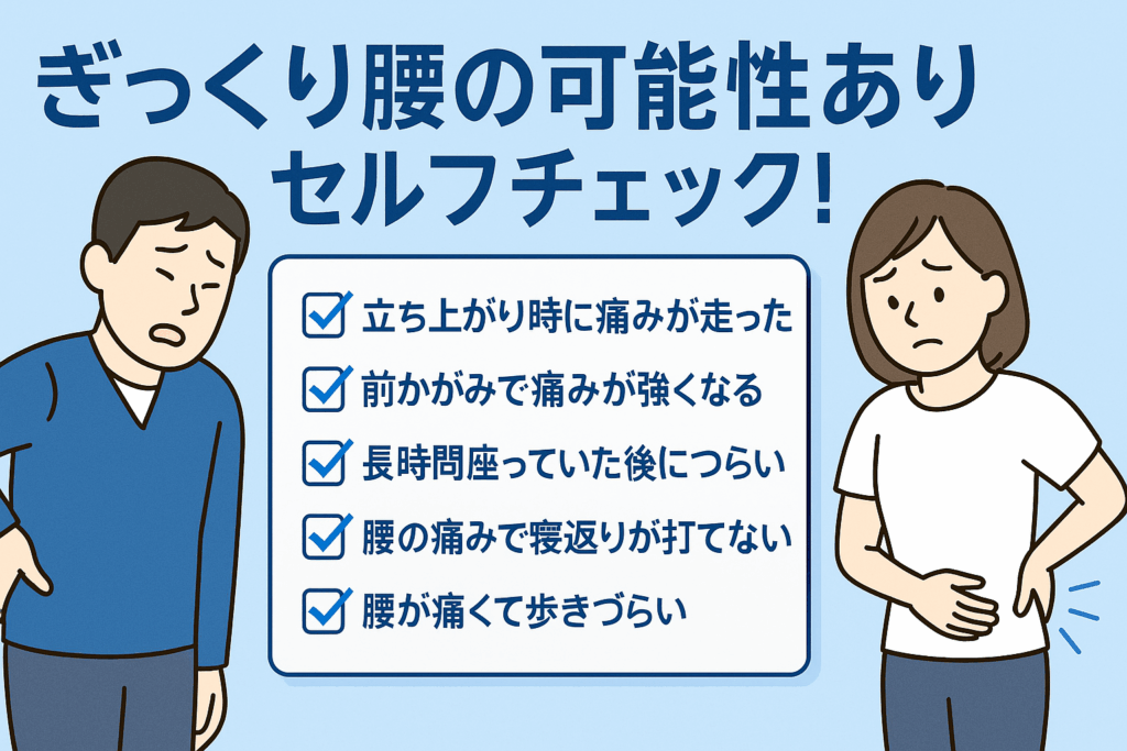 ですから、「ぎっくり腰 症状」が心配な方には、このセルフチェックが早めの意識につながると言われています。