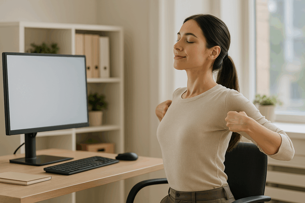理想は、30分に一度は姿勢を変えること。立ち上がって軽く肩を回したり、深呼吸をして背筋を伸ばすだけでも、筋肉の血流が改善しやすいとされています。
