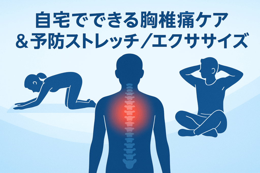 自宅では、**「胸を開くストレッチ」「背骨を動かす習慣」**を続けるだけでも、再発防止につながると言われています。
