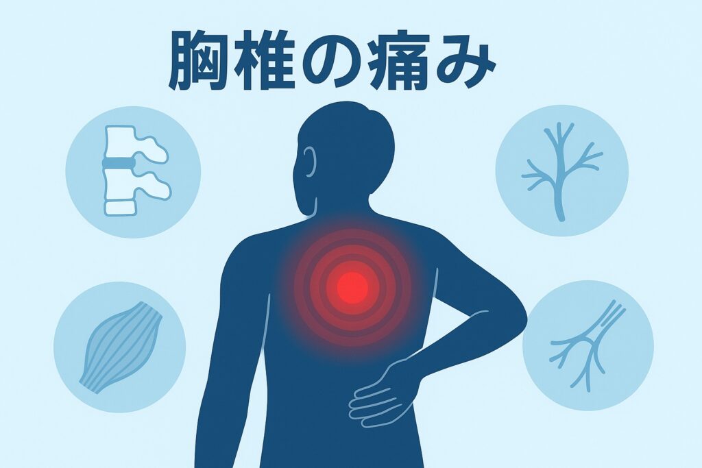 胸椎 痛みに悩んでいませんか?背中(胸部背側)の違和感・圧迫・ズキッとした痛みの原因を整形外科的に整理し、セルフでできるチェックリスト・ストレッチ・受診目安まで分かりやすく紹介します。