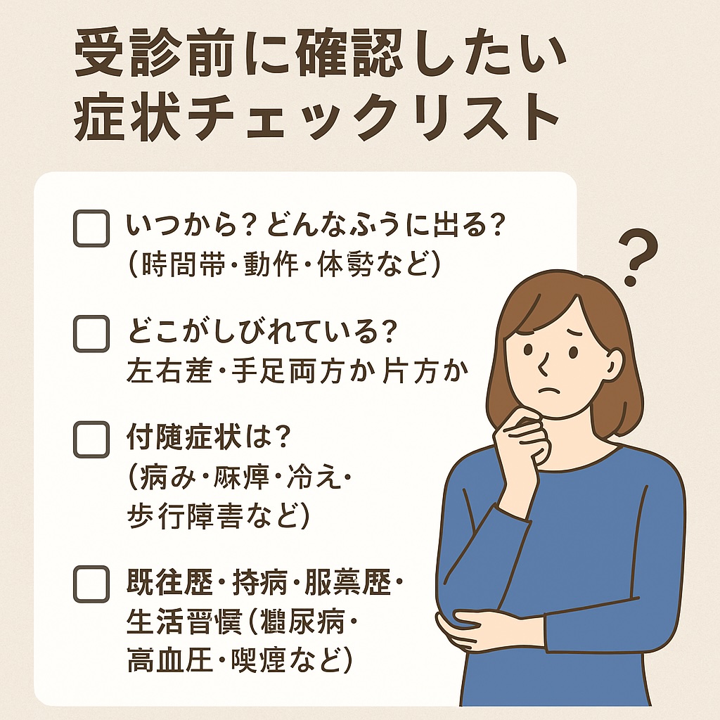 #足のしびれ #症状チェック #血流障害 #神経圧迫 #受診準備