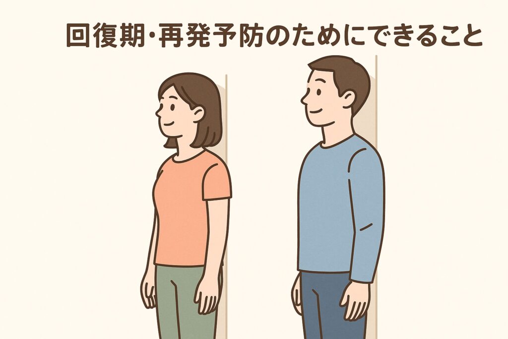 再発を防ぐためには、姿勢のクセや体のバランスを整えることも重要だと言われています。