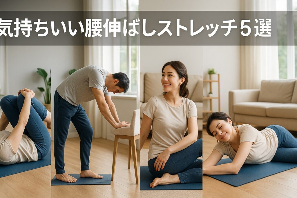 日常のちょっとした時間にできる「腰を伸ばすストレッチ」は、体を整えるリセットタイムにもなると言われています。ここでは、専門家の意見やリハビリ分野で紹介されている方法をもとに、自宅でも簡単にできる5つのストレッチを紹介します。