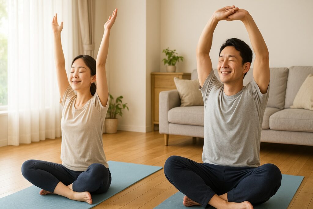 息を止めて勢いよく伸ばすと、体が「守ろう」として逆に筋肉が固くなることがあります。ストレッチの基本は“ゆっくり、呼吸とともに”。息を吐きながら体を伸ばすと、副交感神経が優位になり、リラックス効果も得られると考えられています。