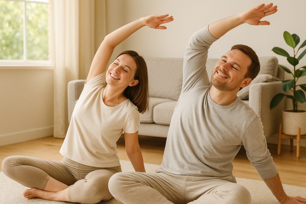 ストレッチは筋肉をほぐして可動域を広げる役割があり、筋力トレーニングは腰を支える“体幹”を安定させる働きをします。特にお腹まわりやお尻の筋肉を使う簡単な運動を取り入れることで、腰への負担を減らしやすいとされています。