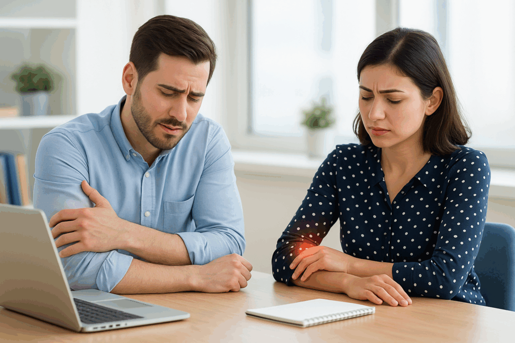 痛みの感じ方にも個人差があります。ビリビリ・ジンジンとした感覚や、鈍い重だるさ、腕を上げると強くなるような症状など、日常での出方をメモしておくと、来院時に伝えやすくなります。