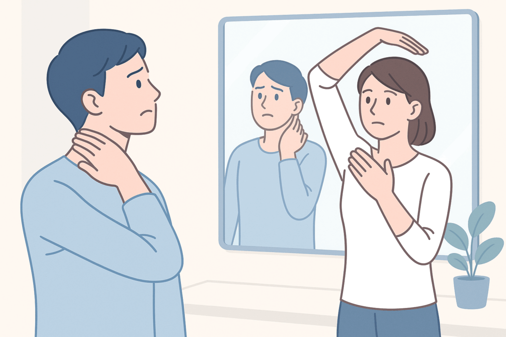 実際、どんなときに症状が強く出るかを自分で観察しておくと、原因の絞り込みや来院時の説明に役立つと言われています。ここでは、自宅でも簡単に行えるセルフチェックや、普段の生活で注意して見ておきたいポイントを紹介します。