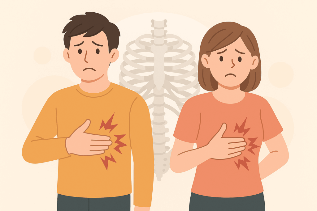 こうした症状は、肋軟骨炎や肋骨の微細なひび、あるいは肋間神経の炎症などが関係している可能性があると言われています。