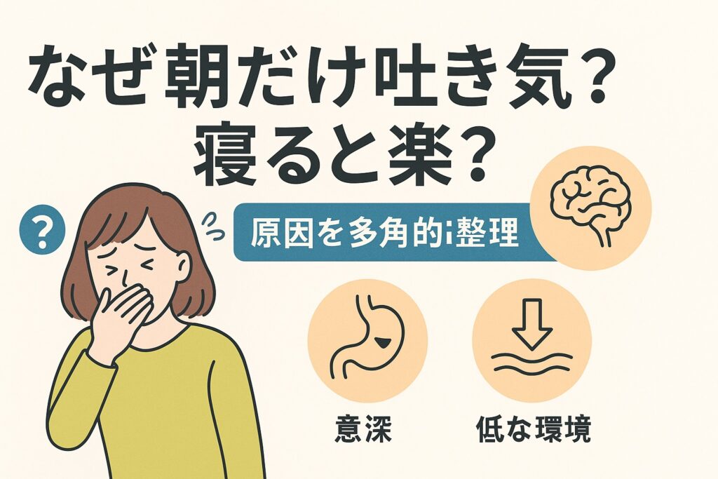 起きると吐き気 寝ると楽――なぜ朝体調が悪く、横になると落ち着くのか?自律神経・消化器・姿勢などの原因を整理し、すぐ実践できるセルフチェック&対処法を詳しく解説します。