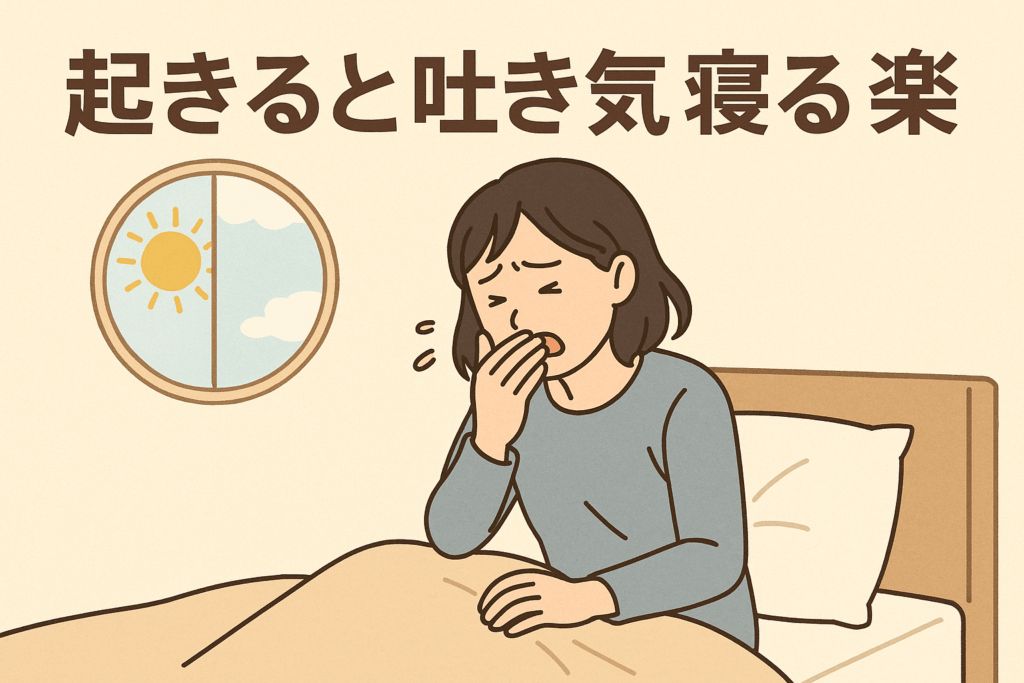 「起きると吐き気、寝ると楽」という感覚は、人によって微妙に違うものの、朝のタイミングで強く出やすいと言われています。