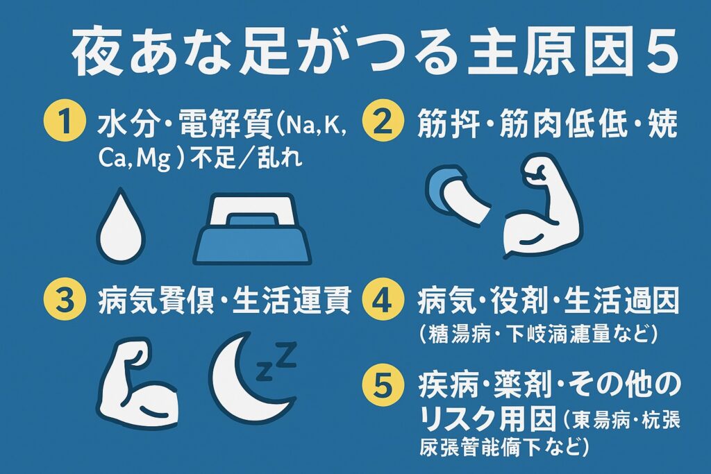 夜間に起こりやすい理由(就寝中の姿勢・冷え・水分・ミネラル)