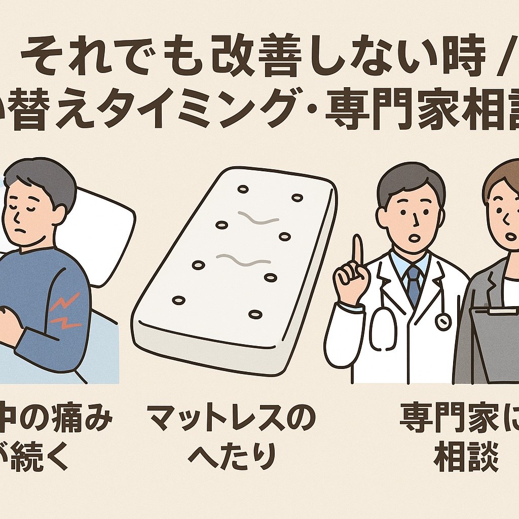 背中の痛みが長引いていると、「マットレスの問題なのか、それとも体の使い方なのか…」と迷うことが多いと思います。実際、寝具を調整しても状態が変わらない場合や、痛みが1か月以上続く場合は、買い替えや専門家への相談を検討するタイミングだと言われています。ここでは、その判断基準を会話するような流れで整理していきます。