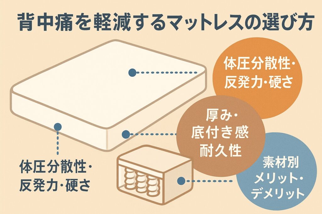 こうした複数の要因がゆるく重なって背中の違和感につながるケースがあるため、「マットレス+寝姿勢+生活習慣」を合わせて見直すことが大切だと考えられています。