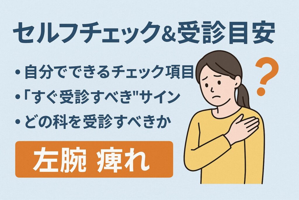 左腕の痺れがあると「様子を見てもいいのか、それとも来院したほうがいいのか」と迷うことがありますよね。実際、専門機関の情報でも“セルフチェックの重要性”が繰り返し述べられていると言われています(引用元: