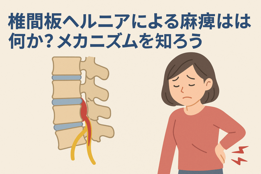 椎間板ヘルニア 麻痺 回復に悩んでいませんか?神経が圧迫されたときの麻痺の原因、回復の目安、保存療法から手術・リハビリ・セルフケアまで、専門家がわかりやすく解説します。