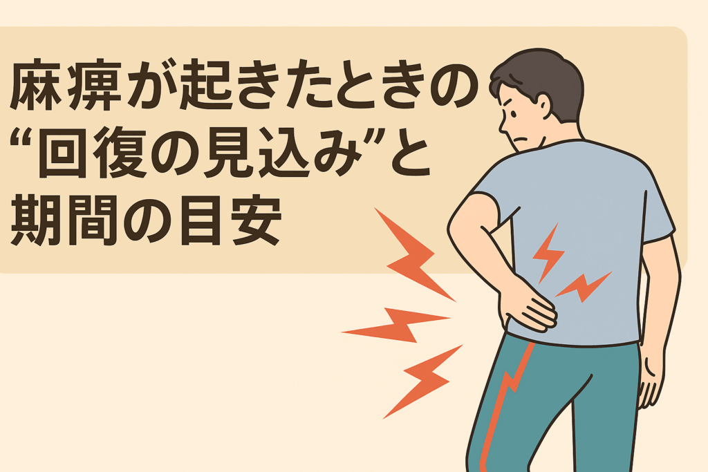 麻痺症状が出た場合、すぐに回復するとは限らないと考えられています。神経は血流が乏しいため、一度障害を受けると回復に時間がかかることが多いようです。ただし、早期に適切なケアや施術を受けることで、神経の回復が促されるケースもあると報告されています。