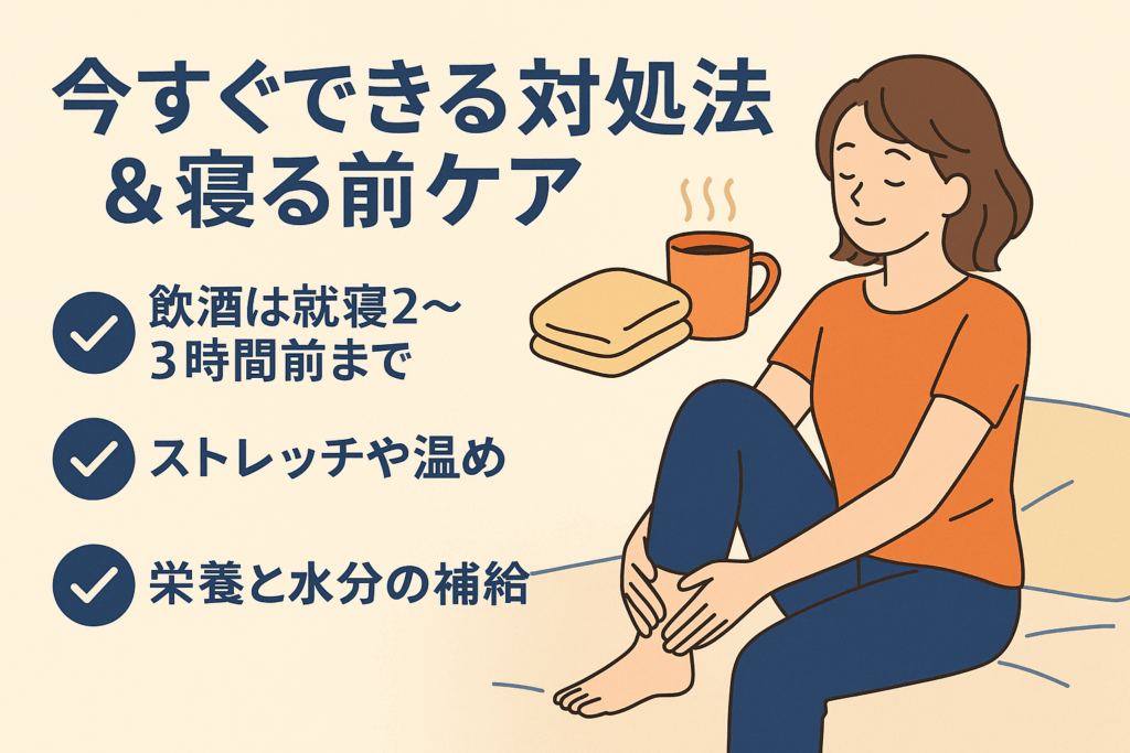 日々の筋肉ケアも再発防止に役立つと言われています。ストレッチや軽い運動、入浴で体を温めるなど、小さな積み重ねで筋肉の緊張がほぐれやすくなるという声もあります。また、大きな筋群(太もも・お尻・ふくらはぎ)をほぐす習慣を続けると、夜間の張りや違和感が目立ちにくくなると説明されています。
