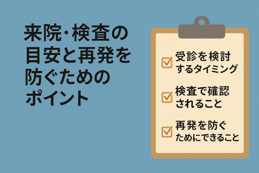 検査の内容は症状により異なるため、気になる点は医療者に相談しながら進めることが大切とされています。