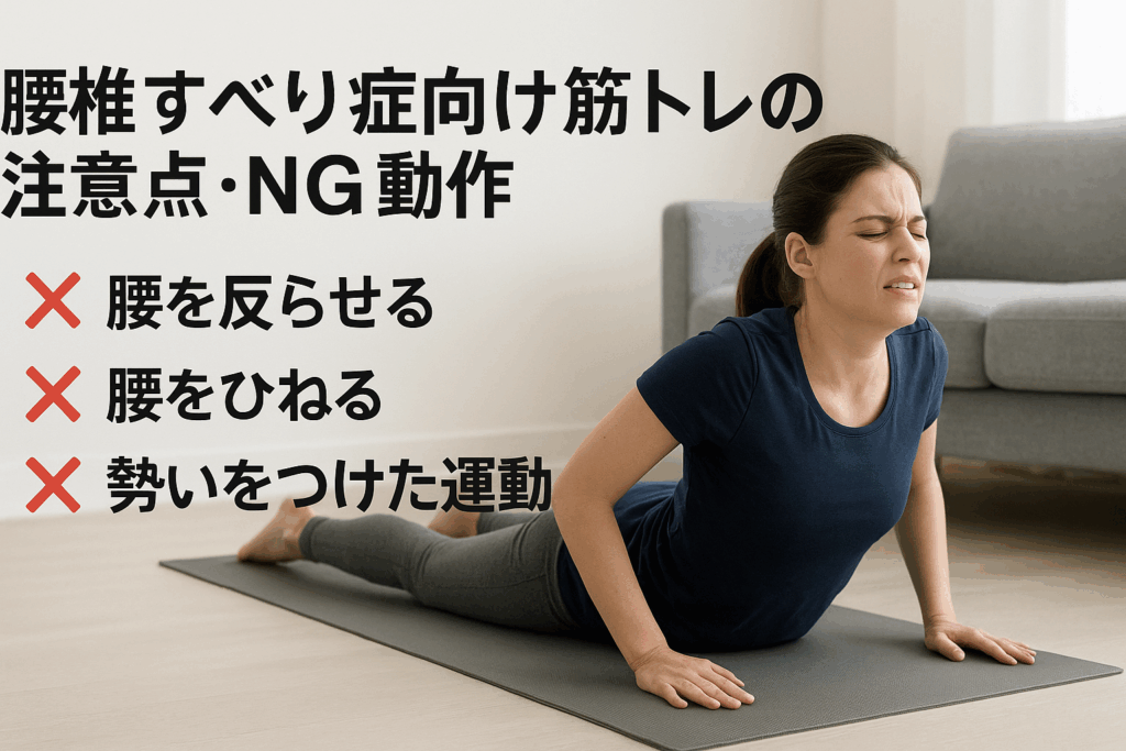 筋トレは腰椎すべり症のケアとして紹介されることがありますが、続けるべきでない状態もあります。たとえば、