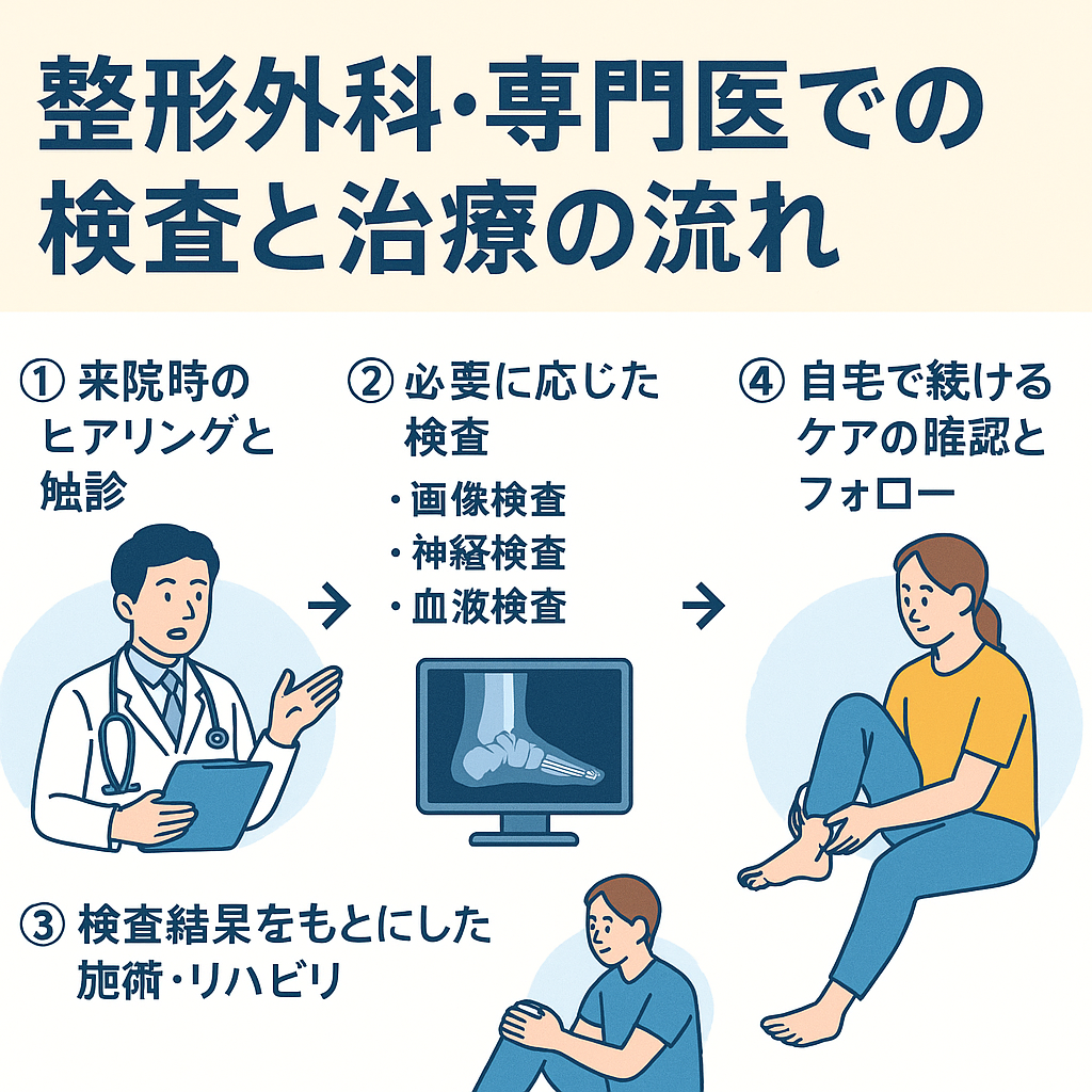 足の小指の「感覚がない」という症状が続くと、どうしても不安になりますよね。僕自身も相談を受けることがありますが、専門家のもとで状況を整理してもらうことで安心につながると言われています。「病院では何をするの?」「どんな流れなの?」と疑問を持つ方も多いので、ここでは整形外科・専門医で一般的に紹介されている流れをまとめてみました。
