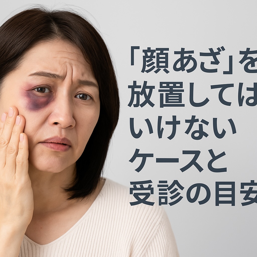 顔をぶつけたあとにあざができても、多くの場合は自然な経過で落ち着きやすいと言われています。ただ、なかには「放置しないほうがいいケース」もあり、症状によっては早めに専門家に状態を見てもらったほうが安心につながるとも紹介されています。ここでは、注意が必要なサインや、どの科に相談すればいいのかを会話するようなイメージで整理していきますね。