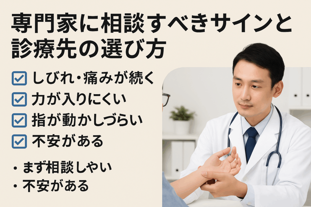 #指がつる相談目安#しびれ痛み継続#診療先の選び方#整形外科と神経内科#不安を感じた時の行動