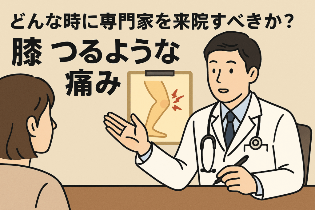 膝がつるような痛みは、一時的な疲れや水分不足でも起こると言われていますが、なかには専門家へ相談したほうが安心なケースもあります。「これって様子を見てもいいのかな?」と迷う方が多いので、ここでは判断の目安をまとめてみました。無理に自己判断を続けず、状況を整理するつもりで読んでみてください。
