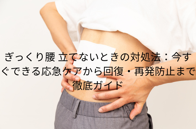 ぎっくり腰 立てない状態でも慌てずに対応できます。安静・冷却・起き上がり方・動き出し・受診目安・再発予防まで、専門院監修の安全なステップを分かりやすく解説します。