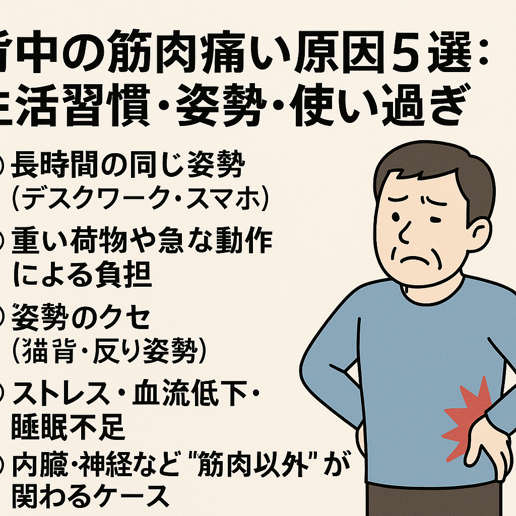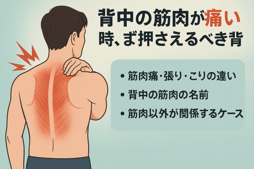 #背中痛い原因#筋肉痛と張りの違い#僧帽筋広背筋脊柱起立筋#姿勢と生活習慣の影響#筋肉以外の要因にも注意