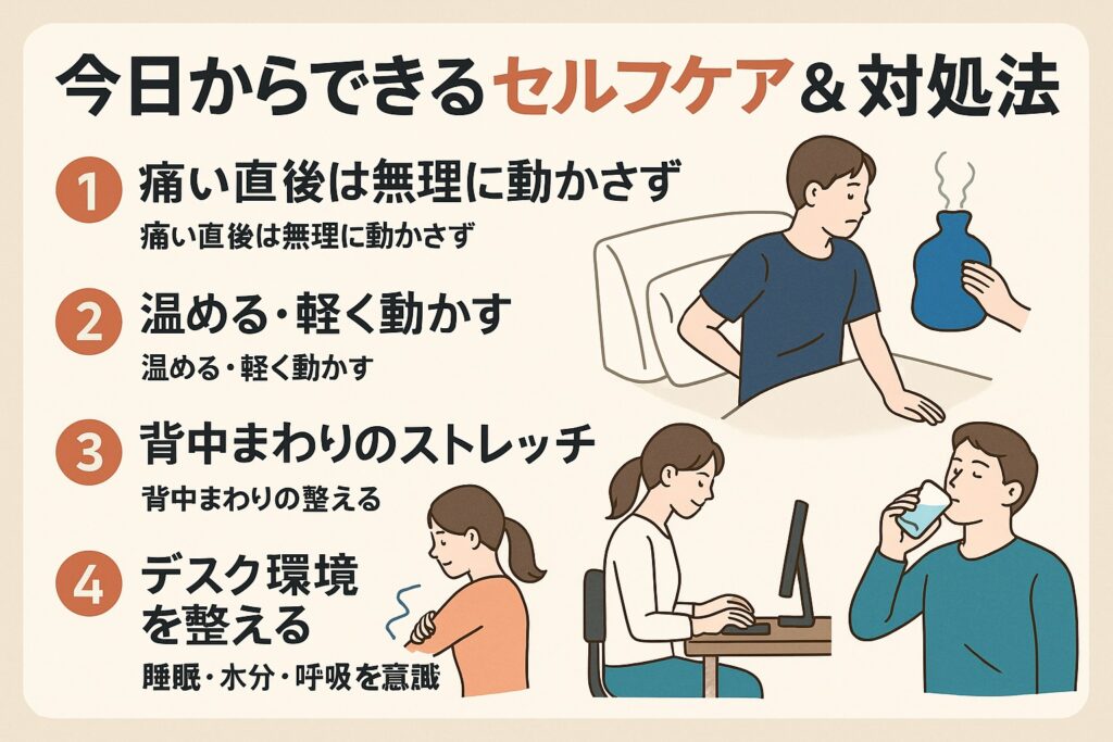 #今日からできる背中ケア#痛い直後の過ごし方#背中ストレッチの基礎#デスク環境の見直し#回復しやすい生活習慣