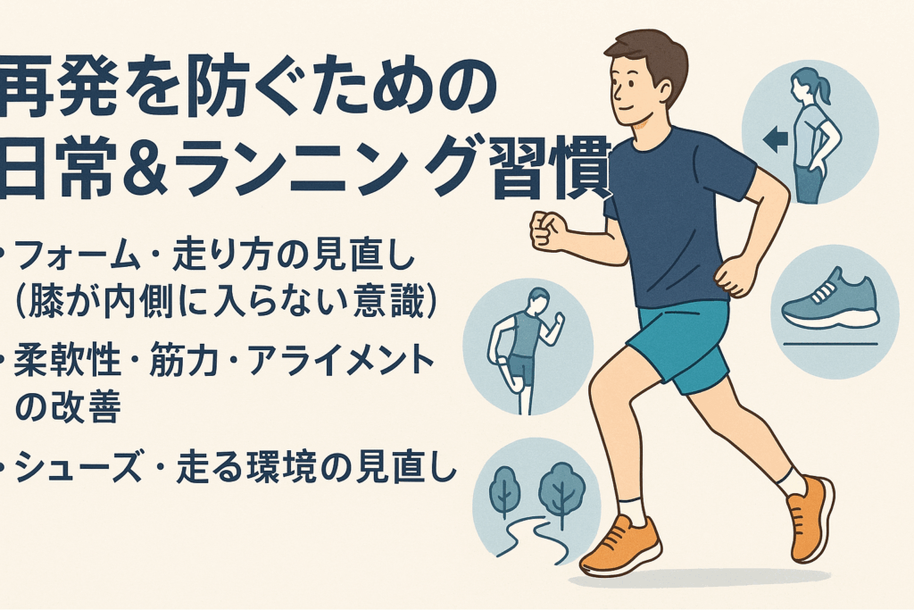 再発は、ランニング量やスピード、シューズ変更など“急な変化”がきっかけで起きやすいとされています。