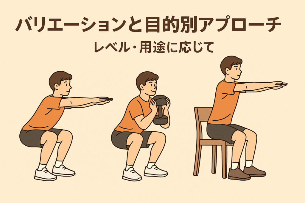 そんな相談を受けることがあります。スクワットには種類が多く、目的によって向いている動きが変わると言われています。ここでは、レベル別に“やりやすい形”をまとめてみます。