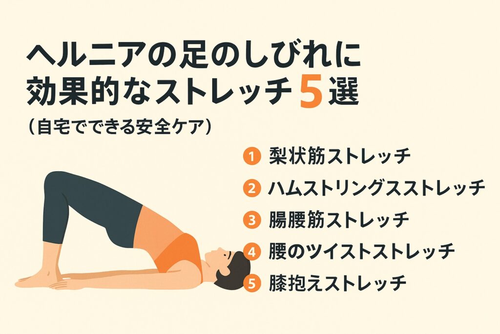 ヘルニア 足のしびれ ストレッチで「何をすればいいかわからない」「悪化しないか不安」という人に向けて、自宅でできるおすすめストレッチ、注意すべきポイント、効果の期待目安などをわかりやすく解説します。