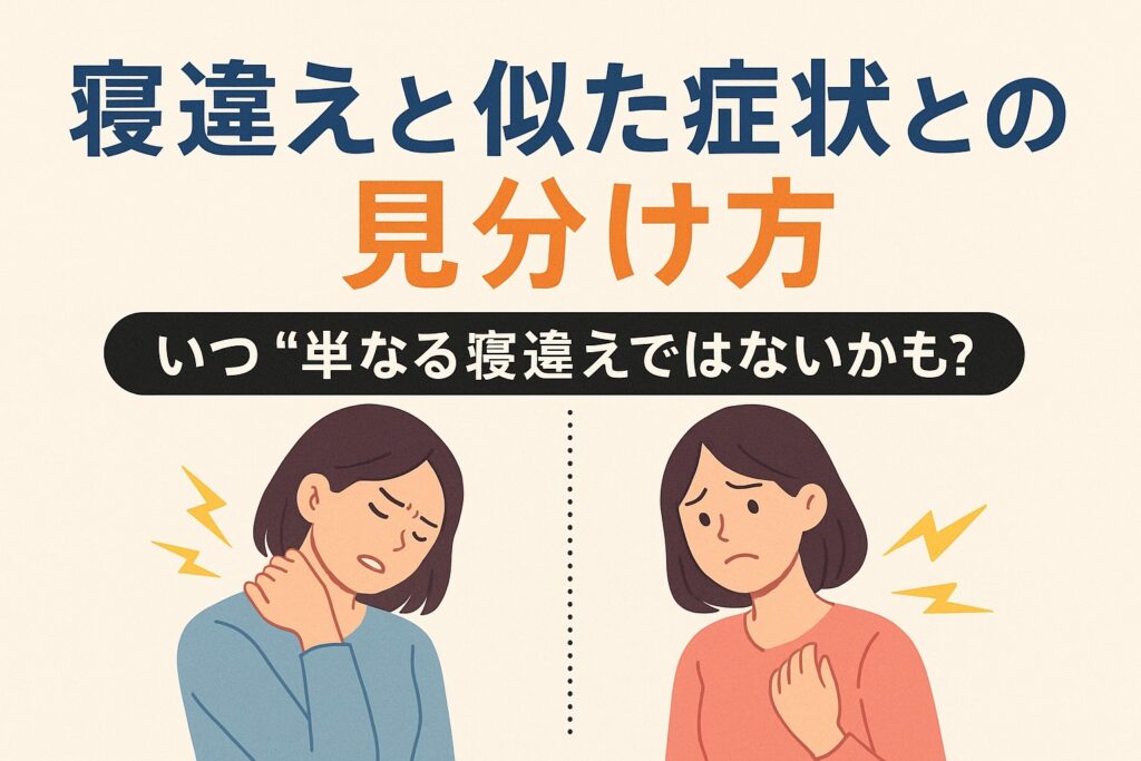 「あれ、ただの寝違えだと思ってたけど…なんか首以外にも変だな?」そんな違和感を感じたとき、放っておくのは危険かもしれません。寝違えとよく似た症状をもつ病態には、神経の圧迫や骨・椎間板の変形など、注意すべきものがあります。ここでは、自宅ケアだけでは済まない可能性のあるケースの見分け方を、わかりやすく説明します。