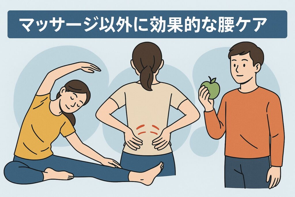 「マッサージしても、なんだかスッキリしない…」そんなときは、腰だけに目を向けすぎているのかもしれません。腰の違和感は、姿勢や体の使い方、生活習慣などが重なって出てくることが多いと言われています。ここでは、マッサージ以外で意識したい腰ケアの考え方を整理します。