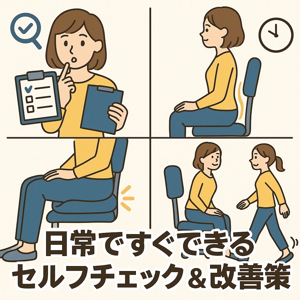 「座るとおしりの骨が痛い」と感じたとき、いきなり来院を考える前に、まずは日常でできるセルフチェックや座り方の見直しから始めたい、という方も多いと思います。