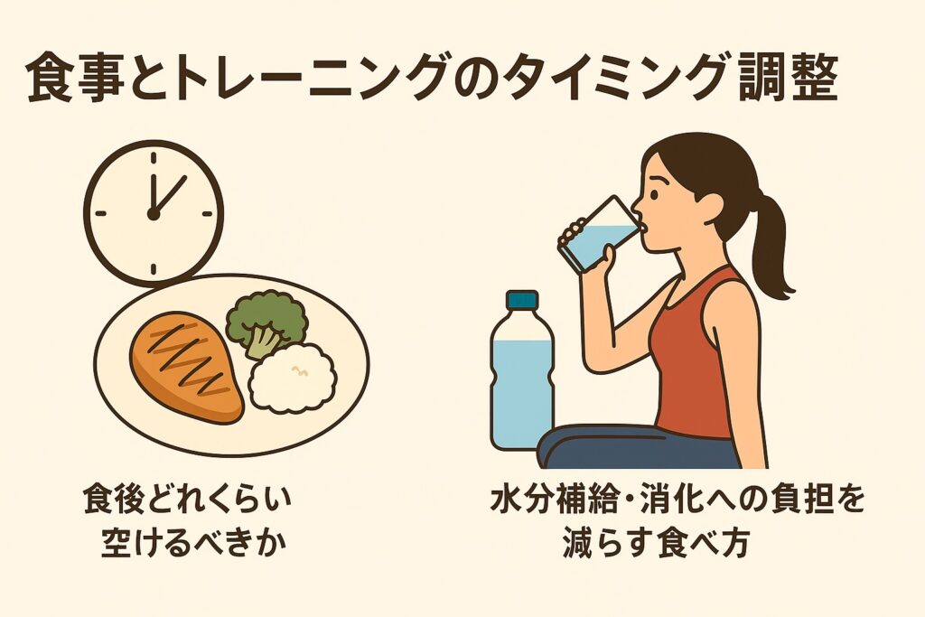 また、トレーニング前の食事は、消化のよいものを選ぶのがおすすめとされています。よく噛んでゆっくり食べるだけでも、胃への負担軽減につながる可能性があるようです。
