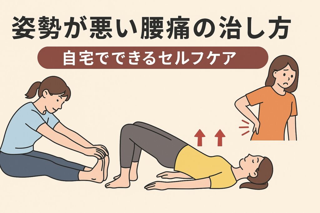 姿勢が悪い 腰痛 治し方を分かりやすく解説。猫背や反り腰など姿勢別の原因、今日からできるセルフケア・ストレッチ、改善しない場合の受診目安までまとめました。