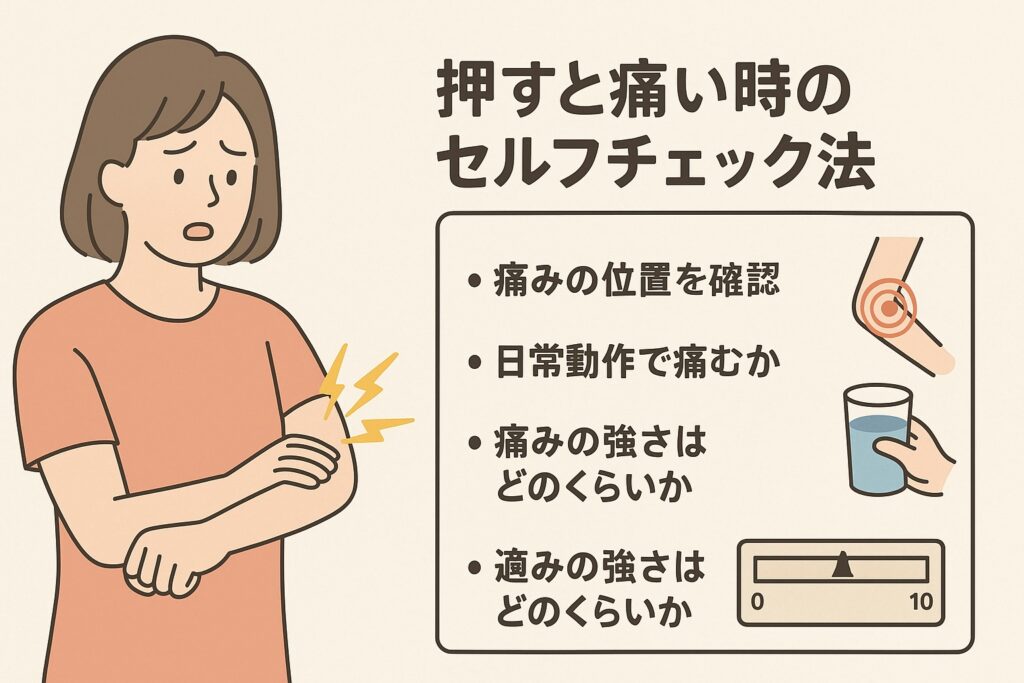 「肘 押すと痛いけど、来院するほどなのかな?」と迷う方は多いと思います。