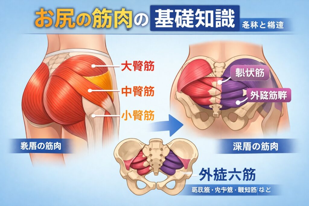 表層から深層までをまとめて理解することで、お尻の筋肉の全体像がわかりやすくなります。