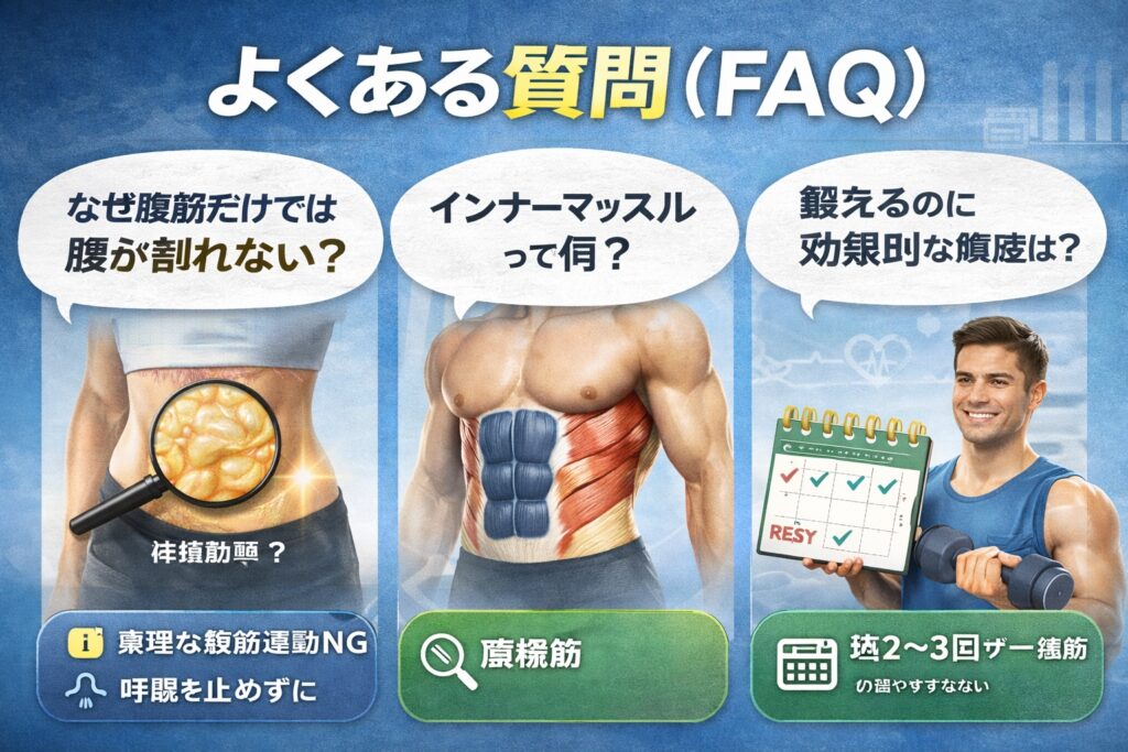 お腹 筋肉について調べていると、「これってどういうこと?」と感じる疑問が出てきやすいですよね。ここでは、特に質問が多い3つのテーマについて、できるだけわかりやすく整理していきます。会話形式で進めるので、肩の力を抜いて読んでみてください。