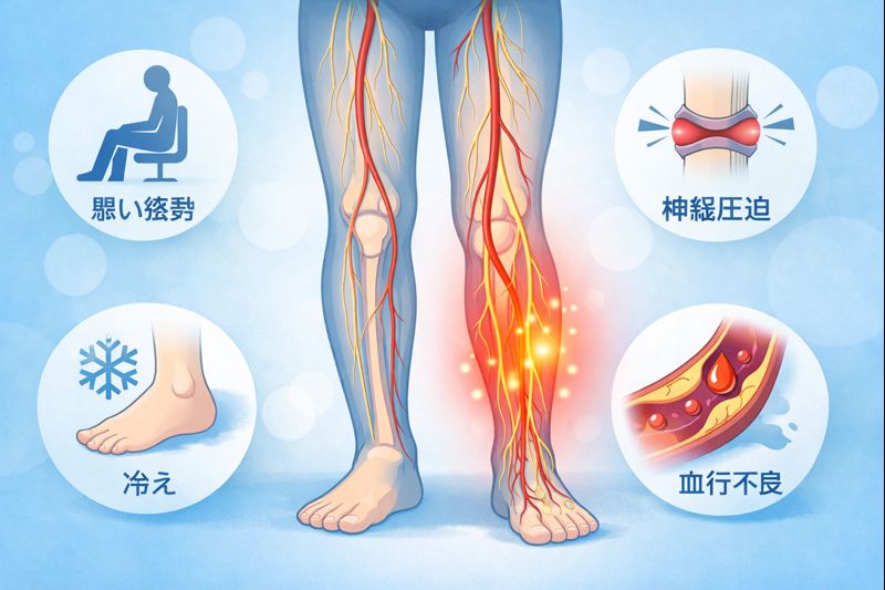 実際には、「姿勢+冷え」「神経圧迫+血行不良」など、原因がひとつとは限らないケースも多いと言われています。