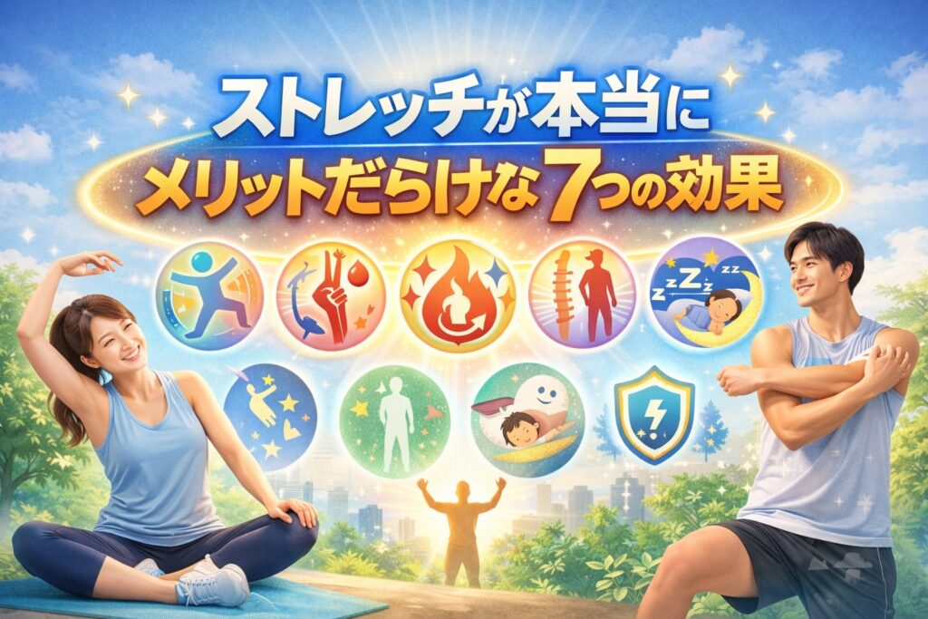 ストレッチ メリットだらけ|ストレッチは柔軟性アップ、血行促進、疲労回復、姿勢改善、ストレス軽減など体と心に嬉しい効果がたくさん。初心者でも続けられるやり方と注意点までわかりやすく解説します。