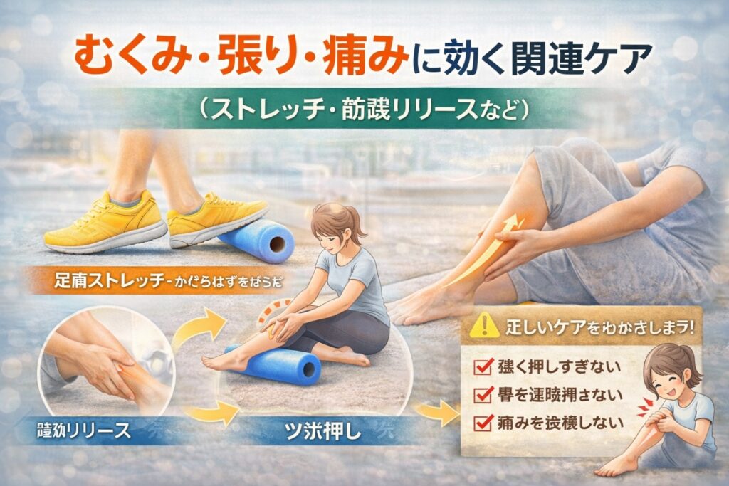 4.むくみ・張り・痛みに効く関連ケア(ストレッチ・筋膜リリースなど)