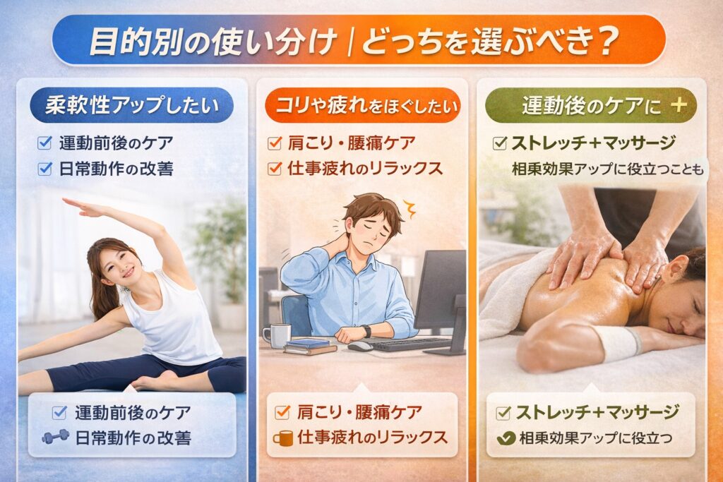 「結局、自分はストレッチとマッサージのどっちを選べばいいの?」