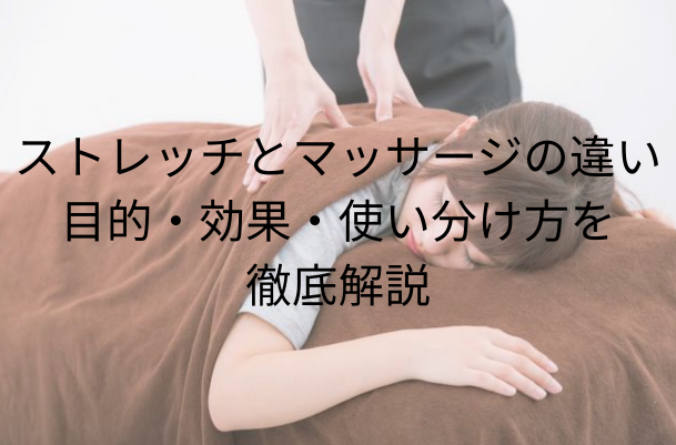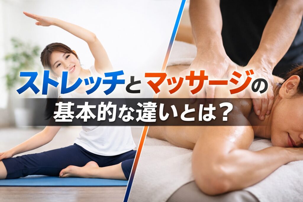 ストレッチとマッサージの違いを徹底比較。ストレッチの効果(柔軟性・可動域アップ)とマッサージの効果(コリ解消・血流促進)を目的別に解説し、あなたに合ったケア方法の選び方をわかりやすく紹介します。
