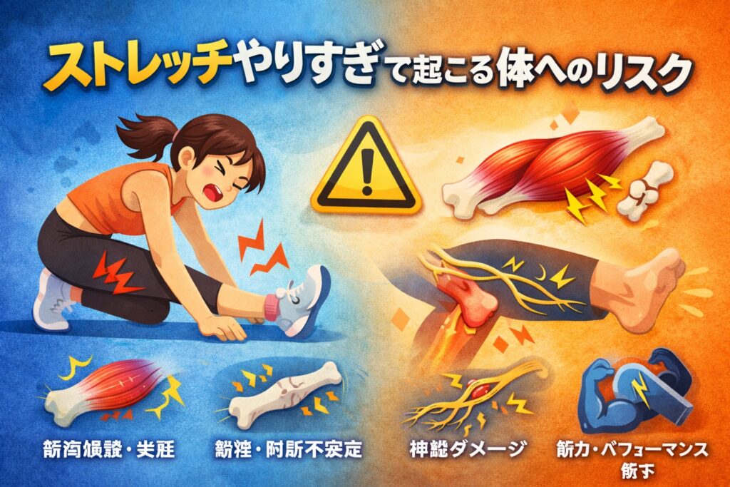ストレッチやりすぎは身体に悪影響を及ぼす可能性があります。筋肉や腱の損傷、関節の不安定化、しびれなどのリスクと、適切なストレッチ方法・頻度・チェックポイントを専門家の知見からわかりやすく解説します。