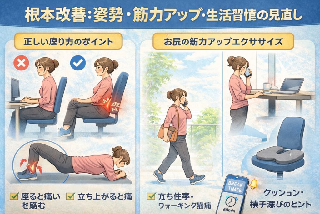 4.根本改善:姿勢・筋力アップ・生活習慣の見直し