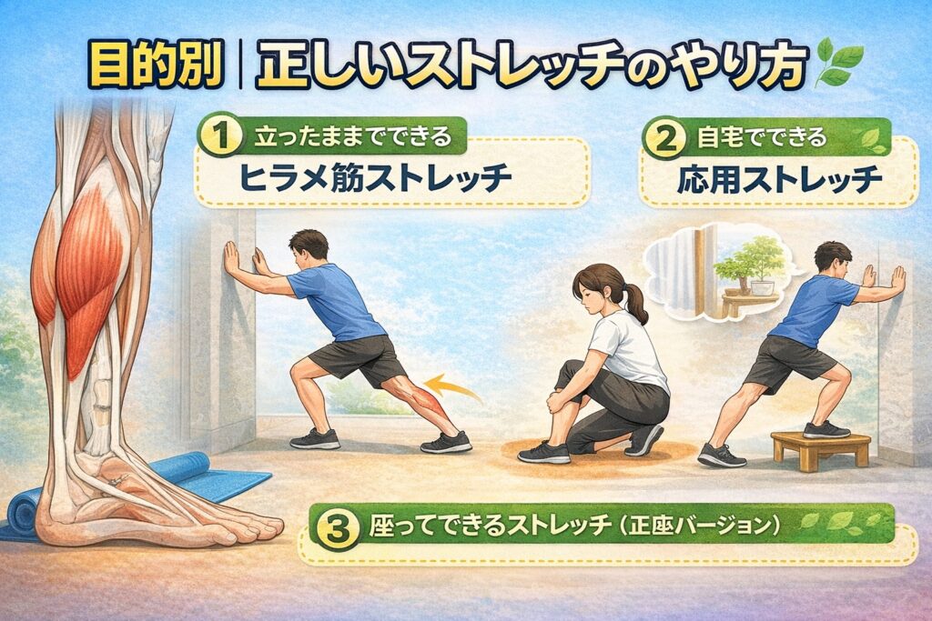 「ヒラメ筋ストレッチって、結局どうすればいいの?」